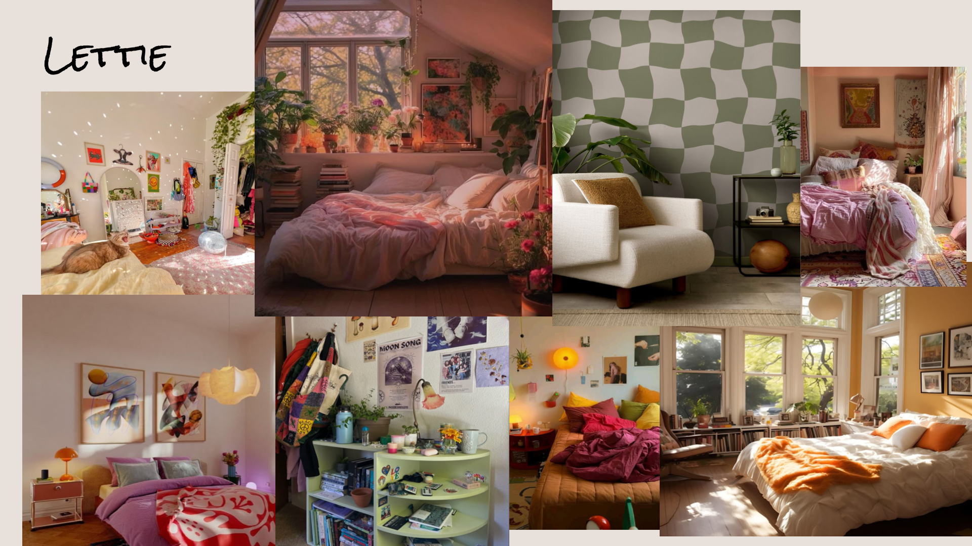 Lettie is aspirational, optimistic, full of energy and spirit which she believes will get her through the hard times, but also the key to the girls’ goal- landing in Atlanta. Lettie’s room is colorful, propped out, ritualistic to her routines. Care and decor is put into her room even though the girls face financial difficulties.